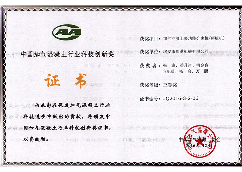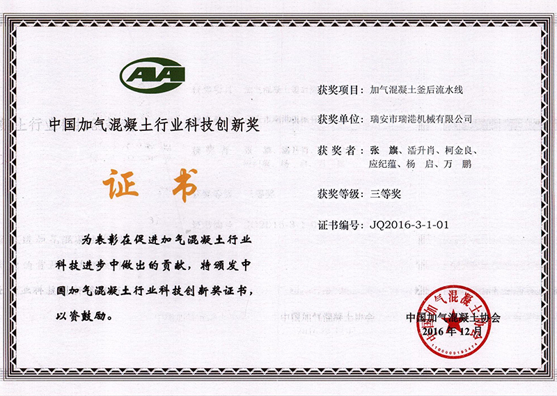 2016中國(guó)加氣混凝土行業(yè)科技創(chuàng)新獎(jiǎng)