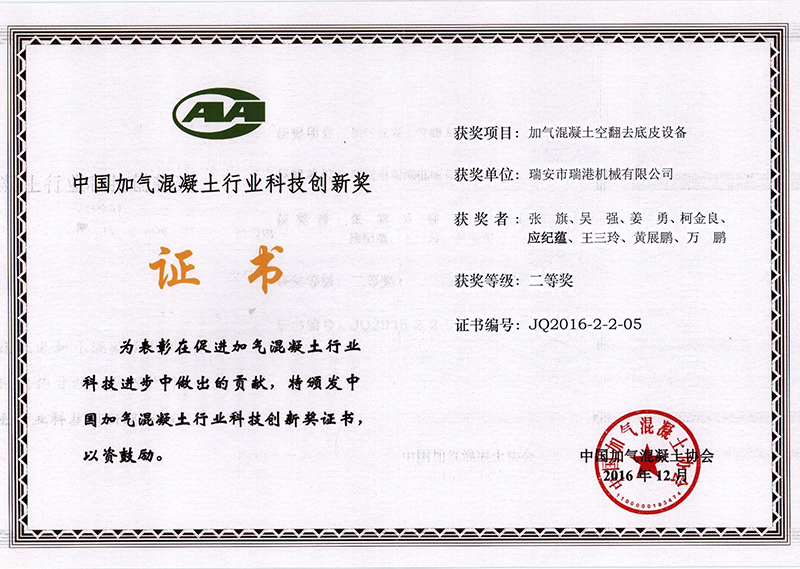 2016年中國(guó)加氣混凝土行業(yè)科技創(chuàng)新獎(jiǎng)-空翻